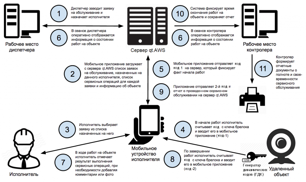 qt.AWS обеспечивает контроль выполнения мобильным сотрудником всех стандартов и регламентов обслуживания удалённых объектов.