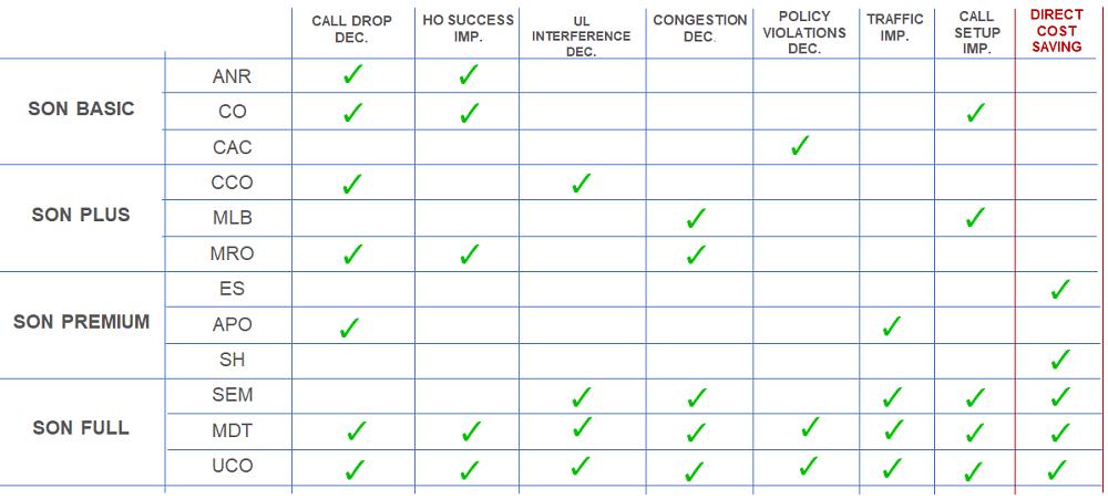 Платформа SON (Self-organizing network) от компании Innovile является уникальным решением для автоматической настройки сетей операторов сотовой связи. Как мультивендорный и мультитехнологичный продукт, он автоматически и динамически оптимизирует параметры производительности и качества всех сетевых элементов, благодаря непрерывной и итерационной методологии до тех пор, пока не будет достигнута оптимальная конфигурация для наилучшей производительности.