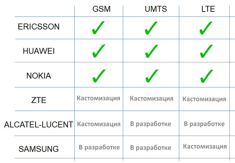 Платформа поддерживает все основные технологии (2G, 3G, LTE) и производителей оборудования RAN, а также готова к интеграции сетей следующих поколений. В состав решения входят парсеры собственной разработки, позволяющие обрабатывать любые источники данных, такие как PCHR, GPEH, SIG и т.д. Архитектура платформы позволяет проводить интеграцию с любыми сторонними платформами для получения или передачи данных.