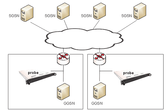 Проба обычно устанавливается на стороне GGSN на Gn интерфейс. Также проба может быть установлена на Gp интерфейс, что позволяет получать данные о роуминговом трафике (inbound и outbound).