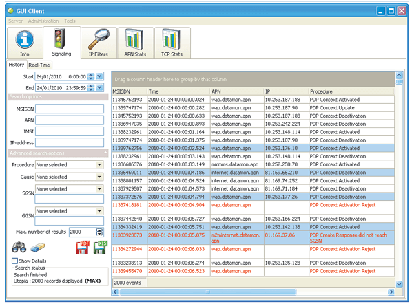 Решение позволяет мобильным операторам постоянно в режиме 24/7 следить за производительностью своей сети и услуг передачи данных. Весь control plane траффик перехватывается и обрабатывается в режиме реального времени.
