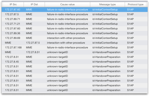 Ниже представлены примеры на базе мониторинга A, IuCS, IuPS, S1-MME интерфейсов.