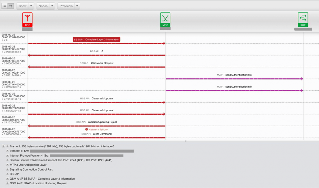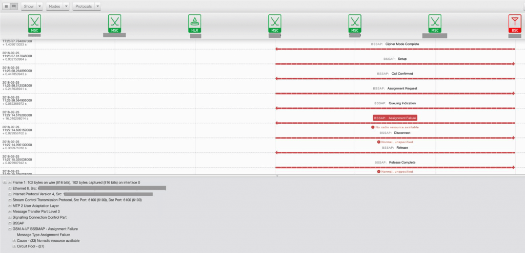 Мониторинг RAN-Core интерфейсов A, IuCS, IuPS, Gb, S1-MME с помощью системы сигнального мониторинга позволяет выполнять контроль предоставления услуг и поиск неисправностей на уровне отдельных транзакций/вызовов по каждому абоненту.