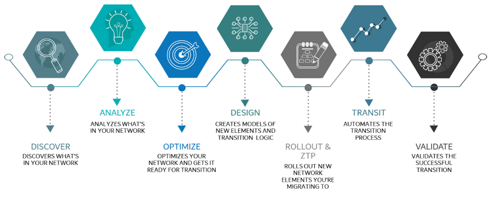 Компания QuintaTec предлагает набор специализированных услуг по миграции (AMS), которые дополняют возможности решения и ускоряют проекты по миграции сети с помощью методологии и опыта. Специалисты по сетям и программному обеспечению помогут на площадке onsite или удаленно разработать и беспрепятственно выполнить точный план миграции, основанный на обнаружении сети и понимании результатов, собранных в режиме реального времени.